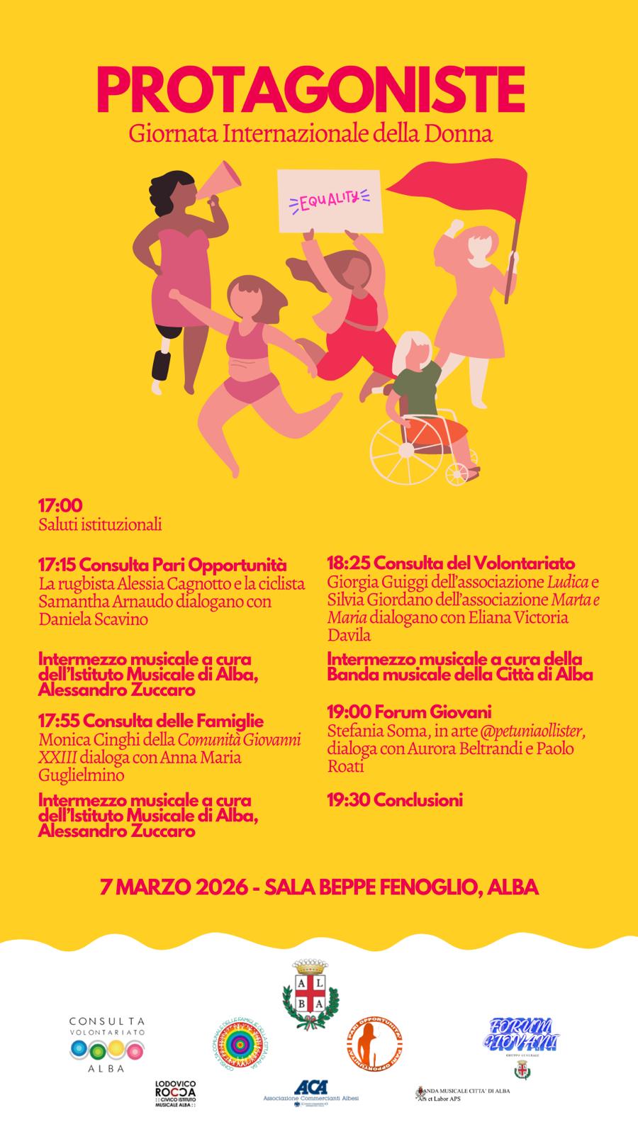 Un pomeriggio di voci, storie e talenti al femminile per celebrare la Giornata Internazionale della Donna. Sabato 7 marzo 2026 la sala Beppe Fenoglio ospita “Protagoniste”, un evento pubblico che intreccia sport, volontariato, comunità, giovani generazioni e musica, mettendo al centro esperienze diverse e concrete di partecipazione.
